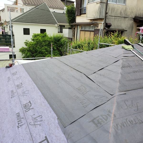 緩い勾配(2寸5分)でも大丈夫です。施工もしやすくとてもいい材料です。